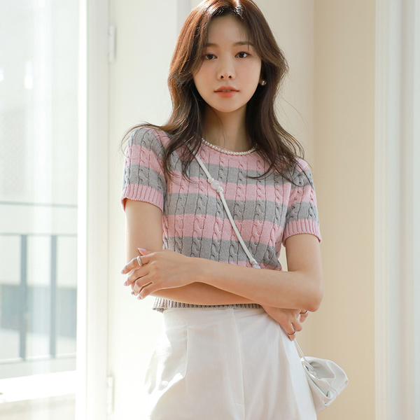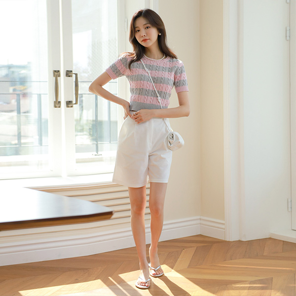 ポイント カラー 配色 スリムフィット クロップド ニット