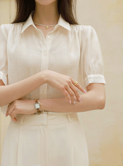 陰々たる グロッシー テンセル パフ シースルー ブラウス