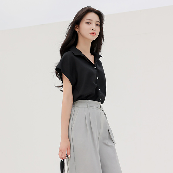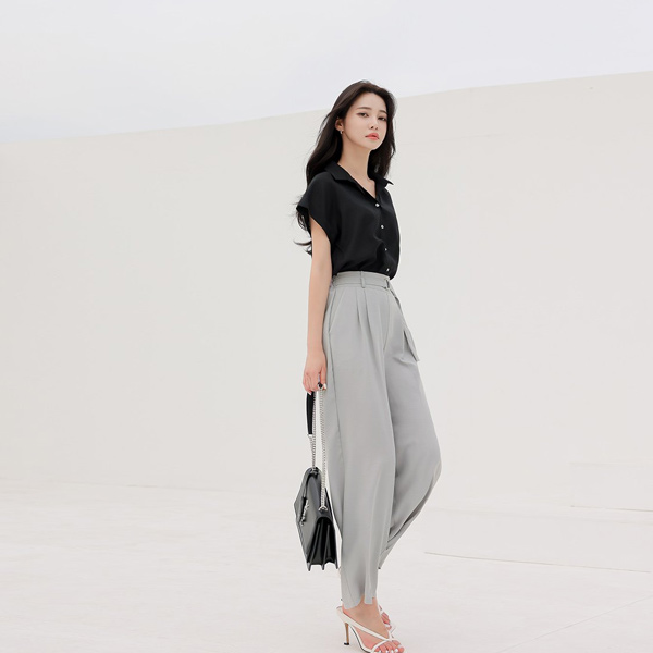 リネン ハイウエスト 4分 パンツ