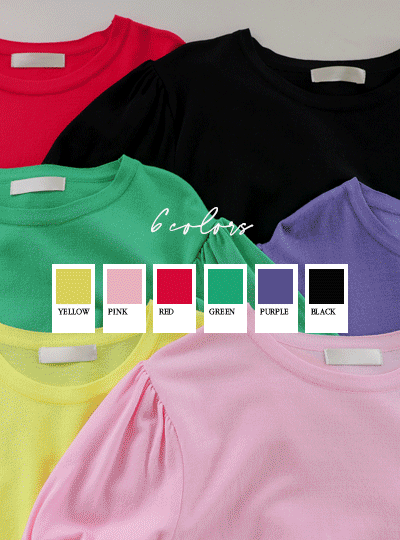 ビビッド カラー パフ 袖 ラウンド ニット