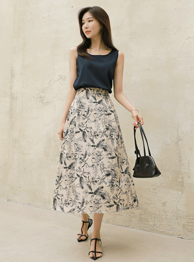 パタン ポイント Aライン 後面バンド コットン ロング スカート