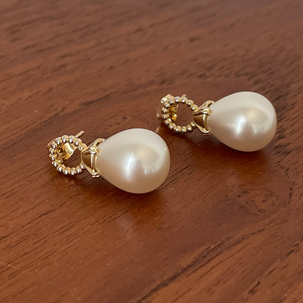 ラグジュアリー 真珠 ゴールド ポイント イヤリング