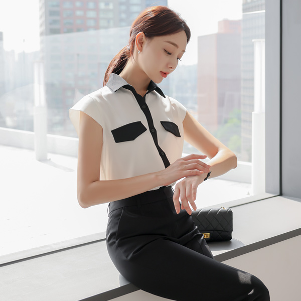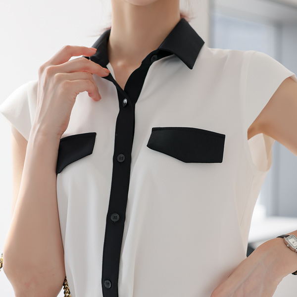 カラー 配色 キャップップ ポケット ブラウス