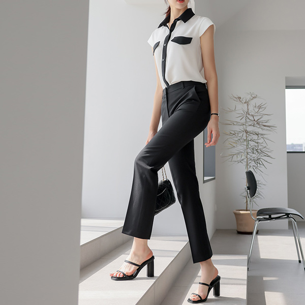 カラー 配色 キャップップ ポケット ブラウス