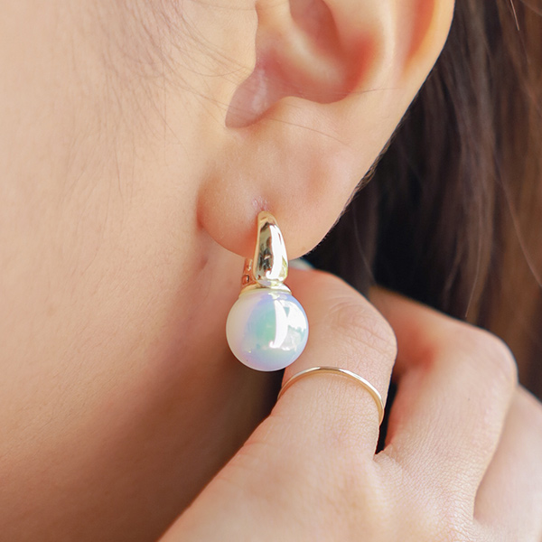オーロラ 真珠 きらっと ポイント イヤリング