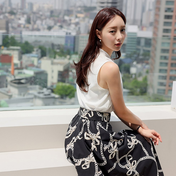 折り畳み式 フリル ハイネック 袖なし ブラウス