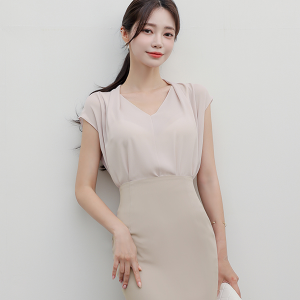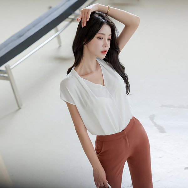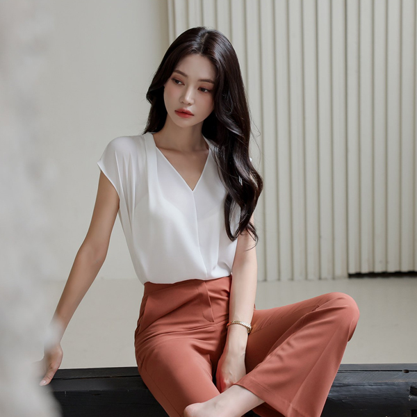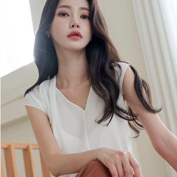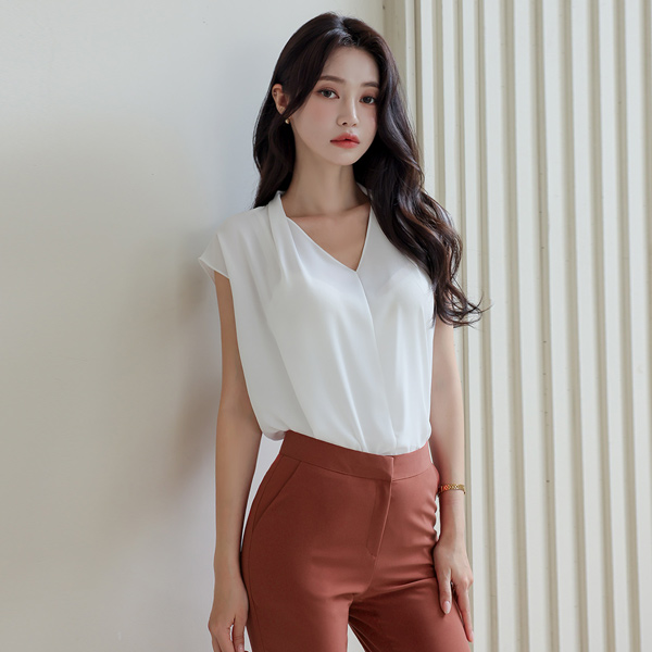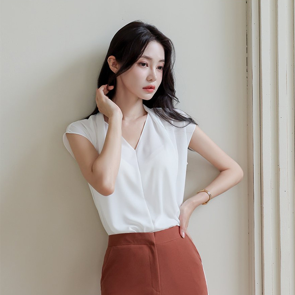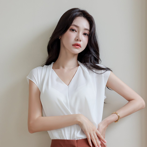 ピンタック ブイネック キャップップ ブラウス