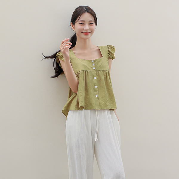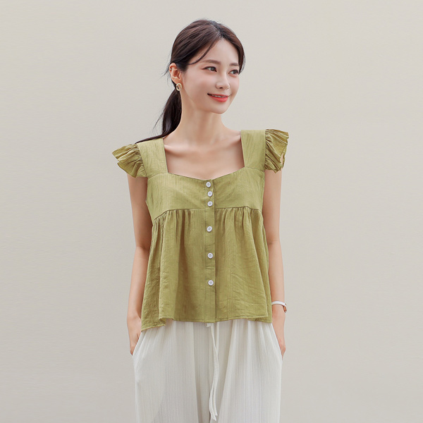ツーウエー フリル 翼 袖なし ブラウス