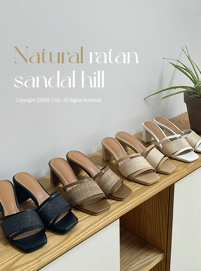 シンプル ナチュラル ラタン ポイント プラットフォームソール サンダル ヒール
