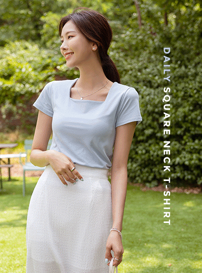 デーリー 細かく美しい スクエアネック 비침방지 ティーシャツ