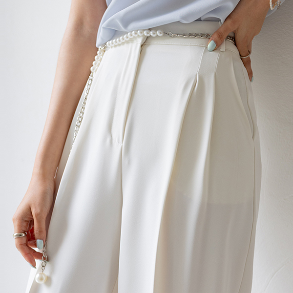 CHIC ダブル ピンタック ソフト ワイド ロング スレックス