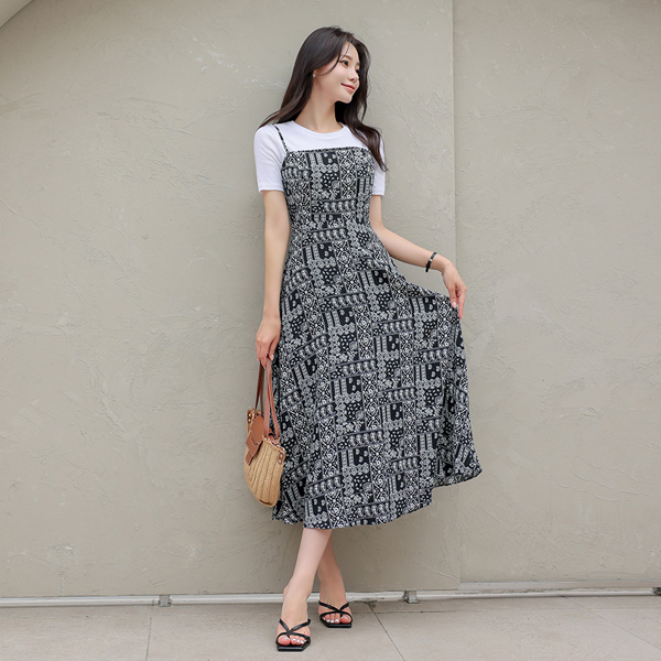 ペイズリー ビュスチエ フレア ワンピース