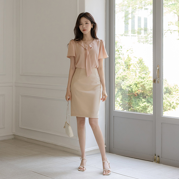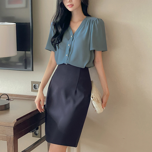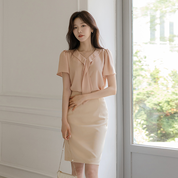 ピンタック ブイネック キャップップ ブラウス