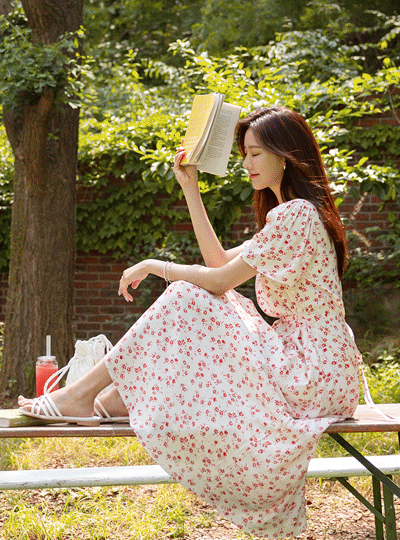 花柄 パタン ピクニック Aライン ロング ワンピース