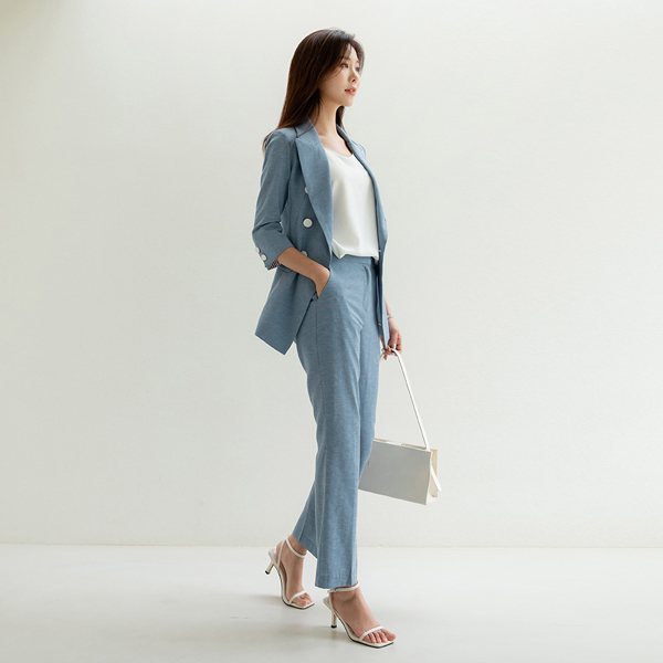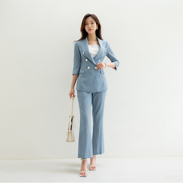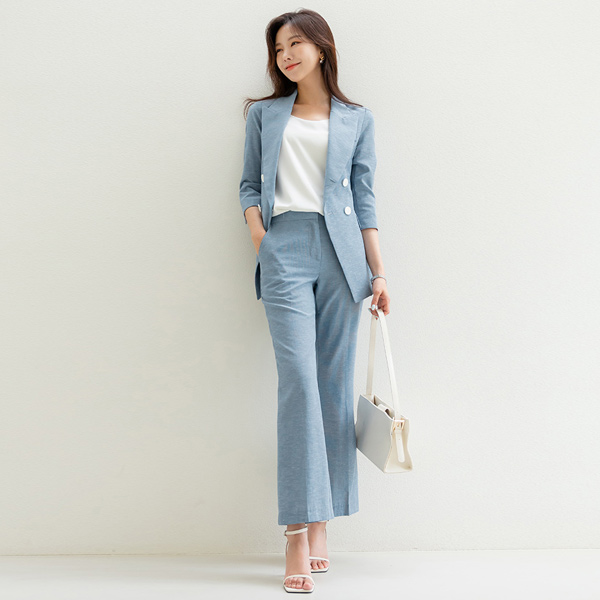 Sera ダブルボタン 袖 ロールアップ ポイント リネン ジャケット