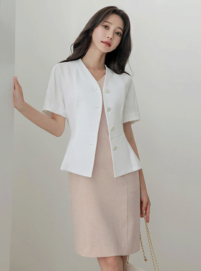 ノーカラー ピンタック ペプラム ブラウス&ジャケット