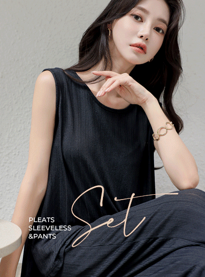 プリーツ コール天 袖なし&パンツ SET