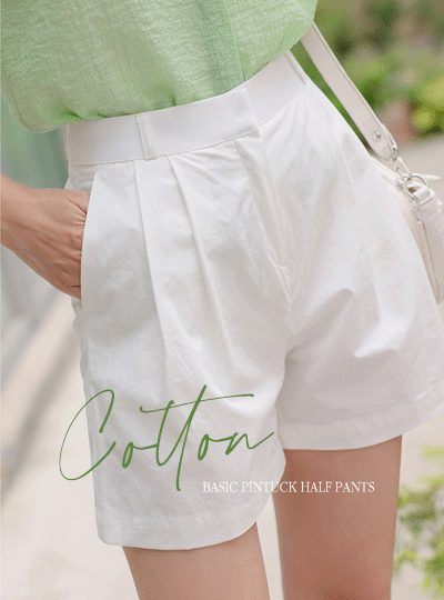 ベーシック コットン ピンタック ハーフ パンツ