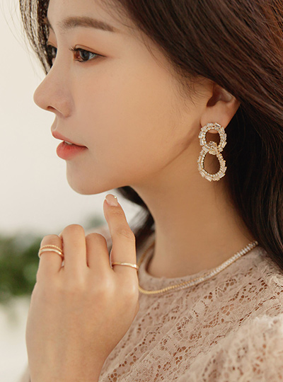 スペシャル キュービック ダブルリング ドロップ イヤリング