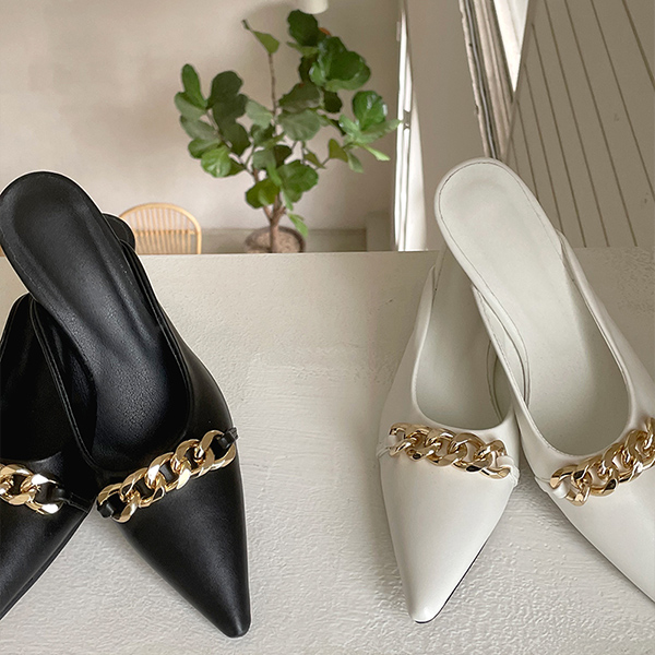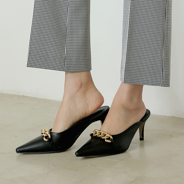 ラグジュアリー ボールド 单 チェーン スティレット ミュール ヒール