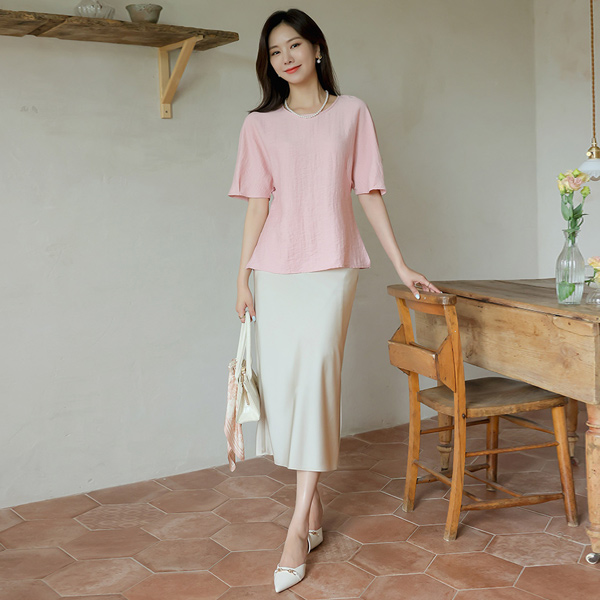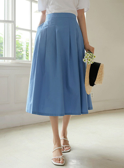 ポイント カラー ピンタック Aライン 後面バンド コットン ロングスカート