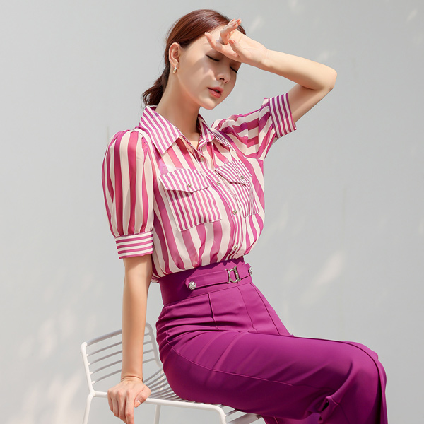 マリン ツーポケット ストライプ ブラウス