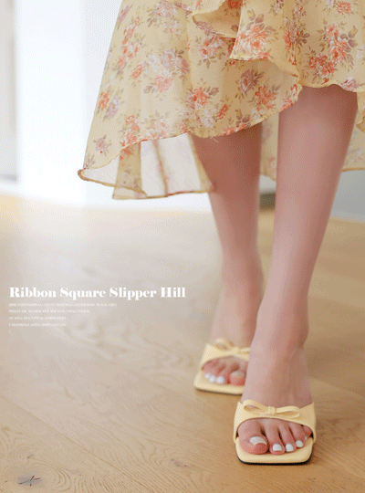 リボン スクエア スリッパ ヒール