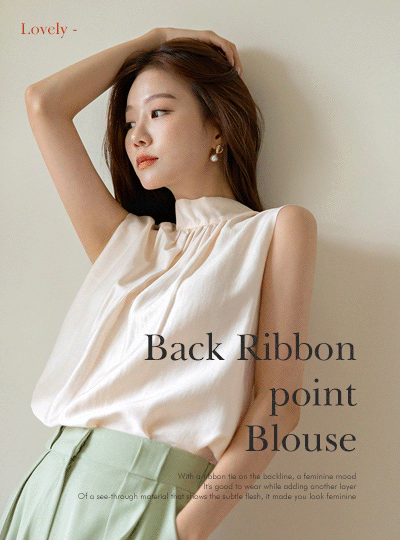 ビーチ バックパック リボン ポイント モダール 袖なし ブラウス