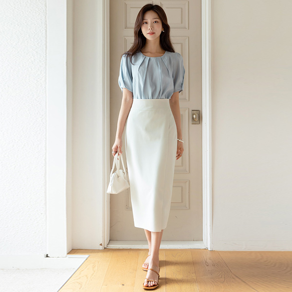 軽い ダブル ピンタック パフ モダール ブラウス
