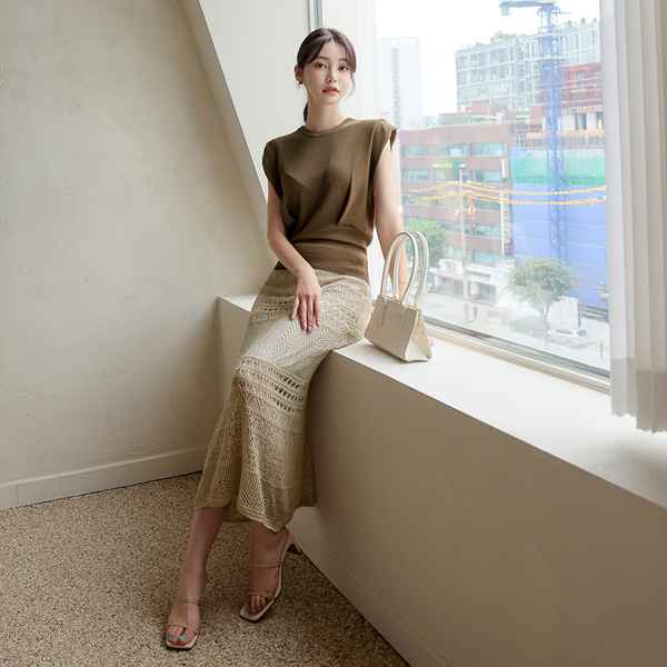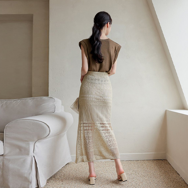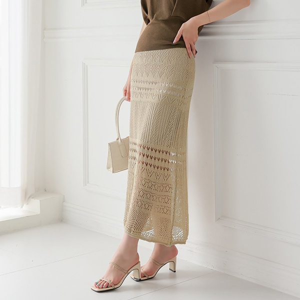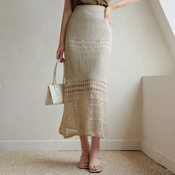 アイレット ニット レイス パンチング ニット スカート