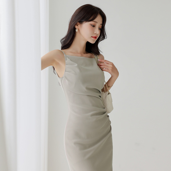 スクエアネック サイド シャーリング キャップそでなし ワンピース