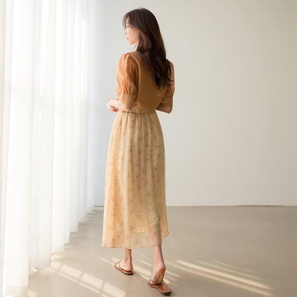 フェミニン パフ 袖 カラー ポイント リンクル ブラウス