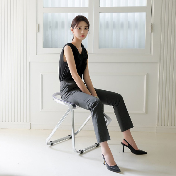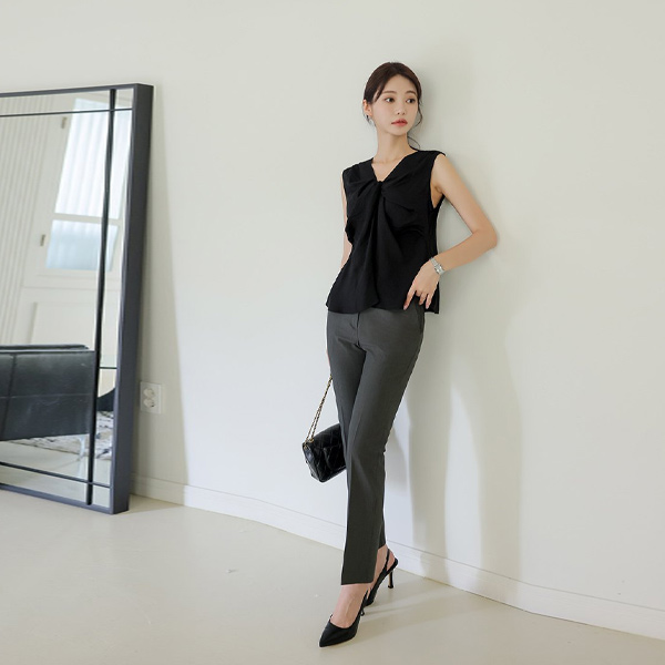 リンクル 縒り スリーブレス ブラウス