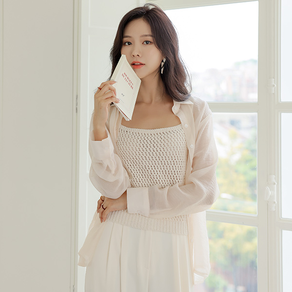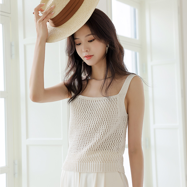 パンチング ポイント スクエアネック 袖なし ニットティーシャツ