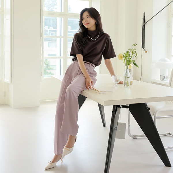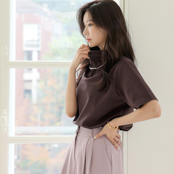 T コットン ルーズフィット セミハイネック 5分 ティーシャツ