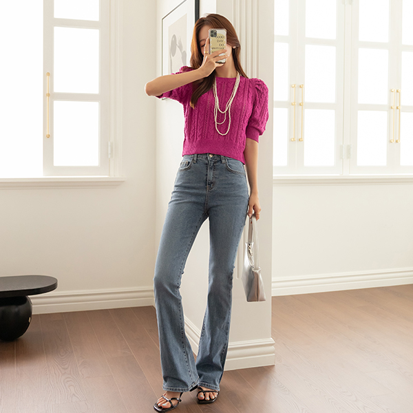 ポイント カラー パフ 袖 クァベギ ニット
