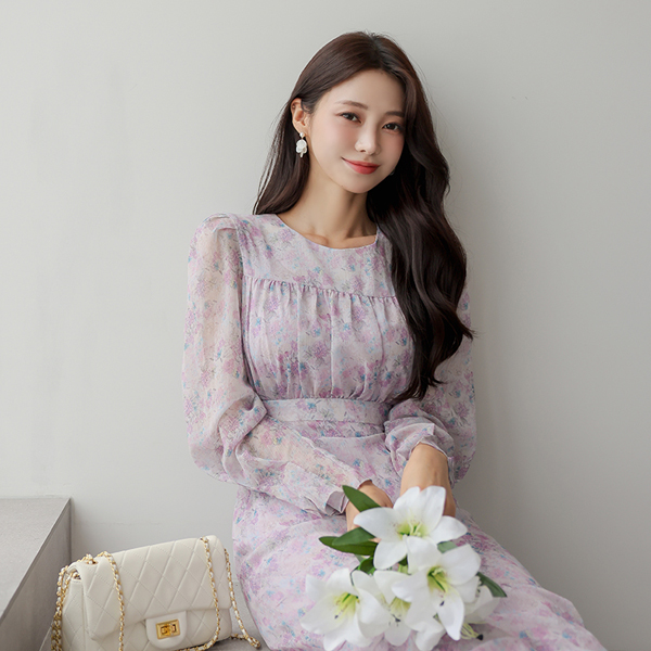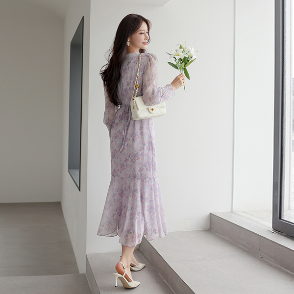 花柄 シフォン ロング ワンピース