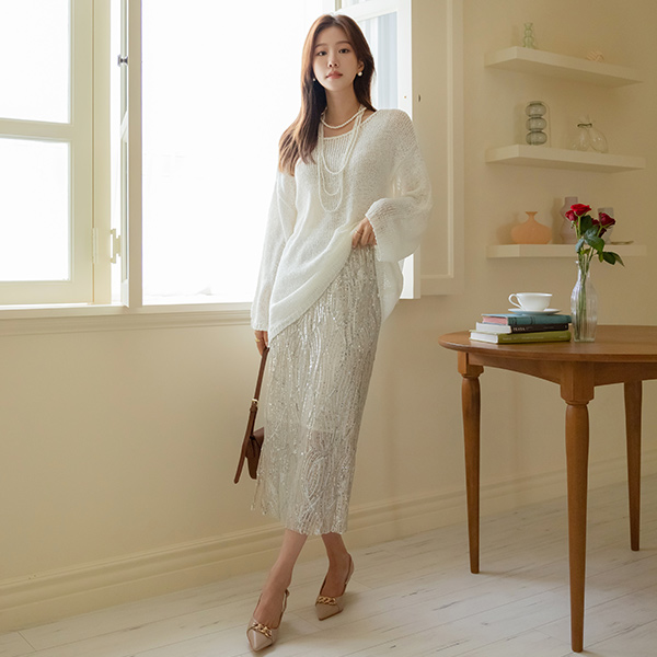 すらっと見える オーバーフィット ロング ニット
