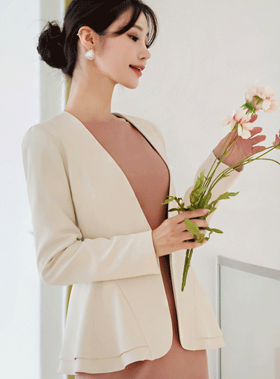 ノーカラー 二重 ペプラム 弾力 ジャケット