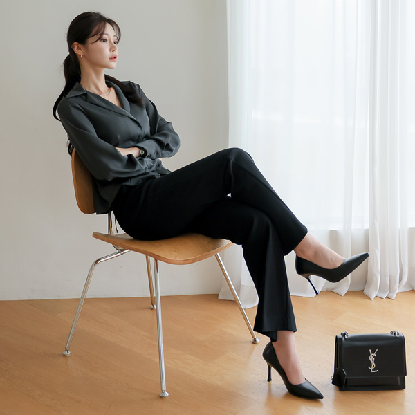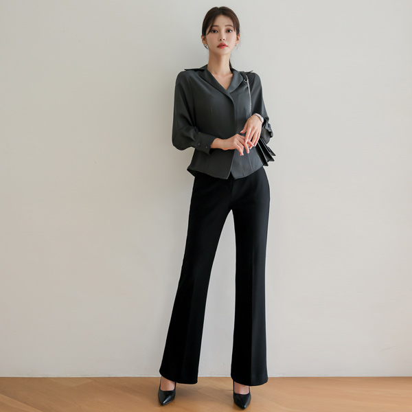 Ellin サテン スリム ピンタック カラー ブラウス