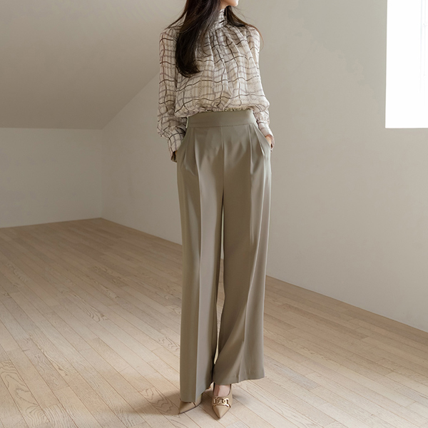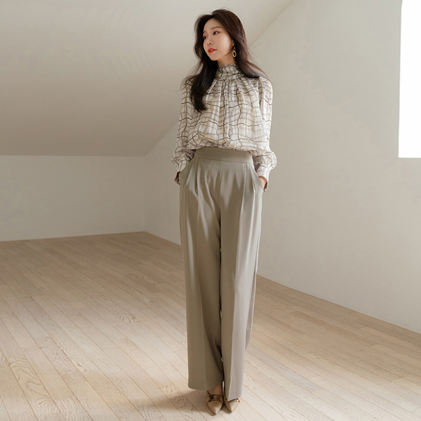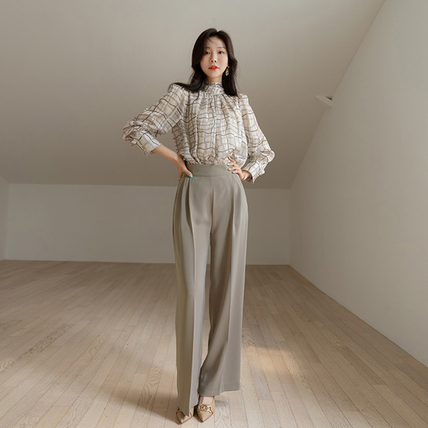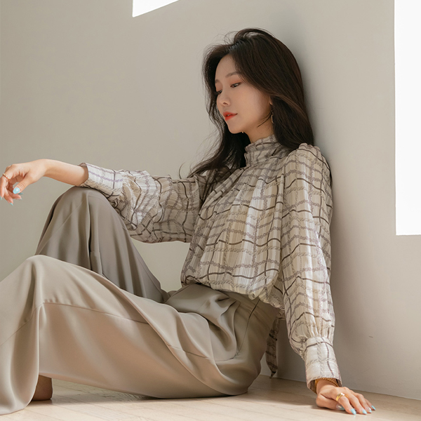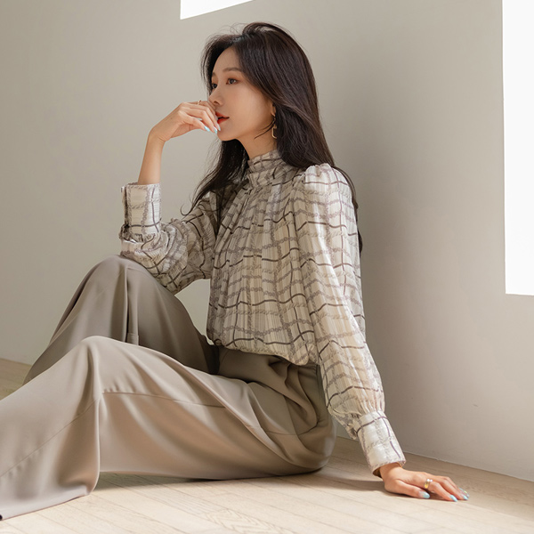 高級な バックパック スカーフ パタン シースルー ハイネック ブラウス