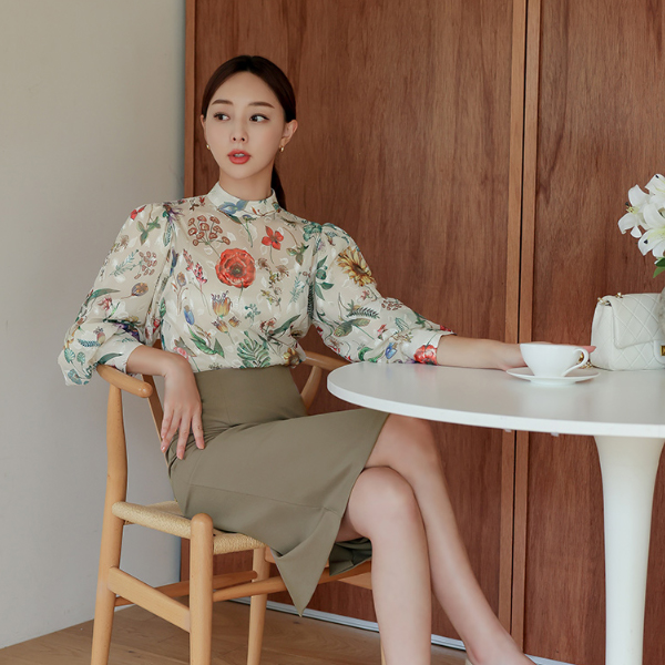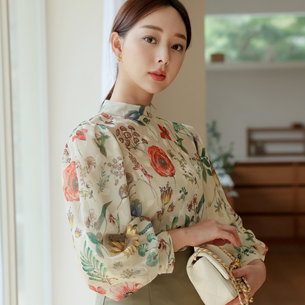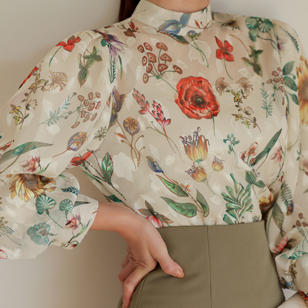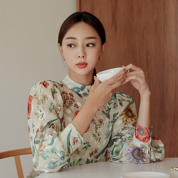 ガーデン パーティー 二重 バルーン パフ ブラウス