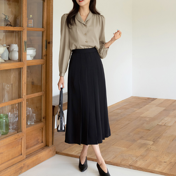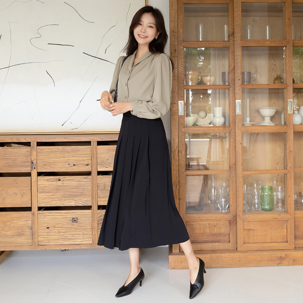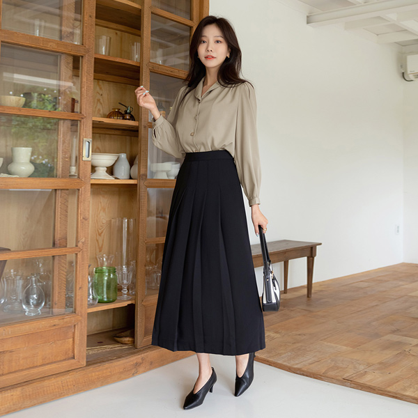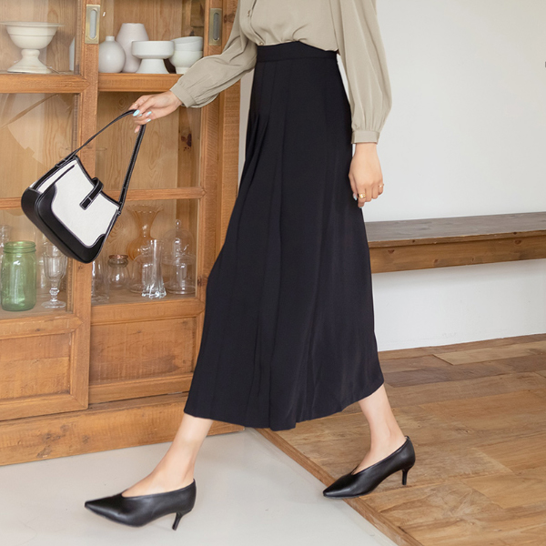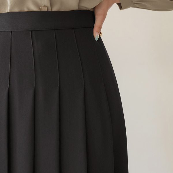 ソフト プリーツ 後面バンド ロング スカート(Fall)