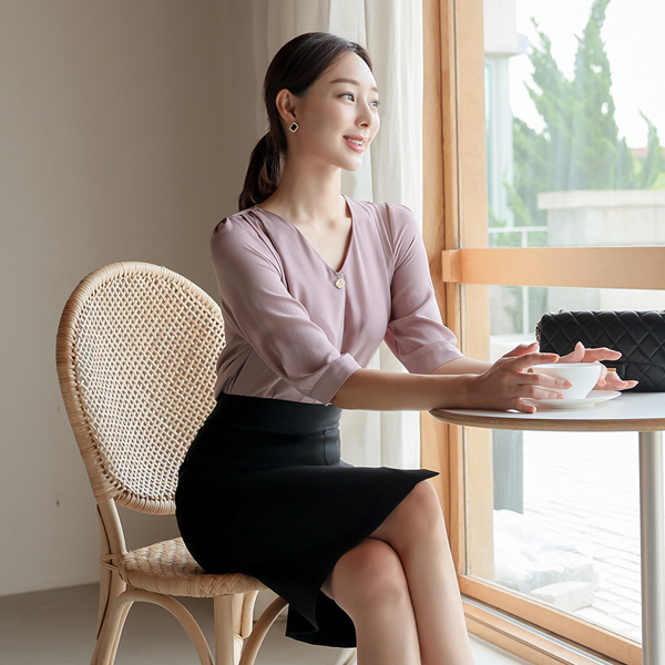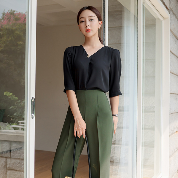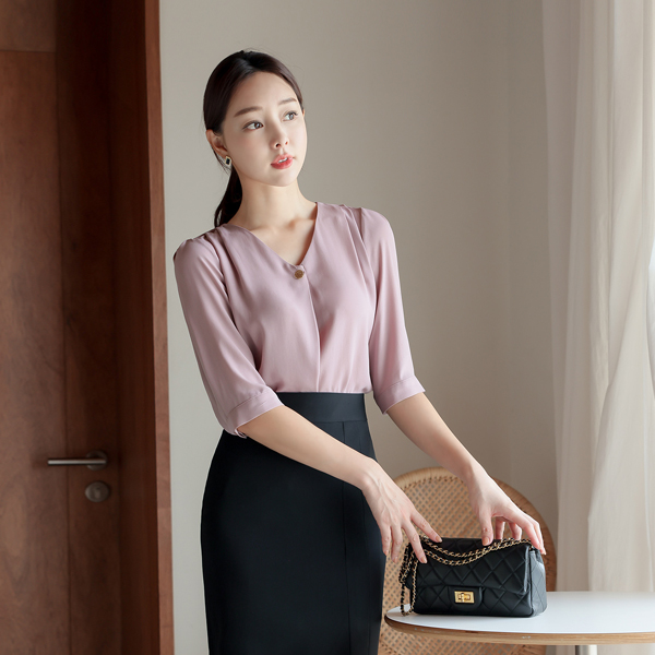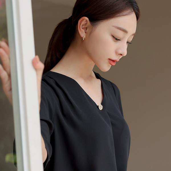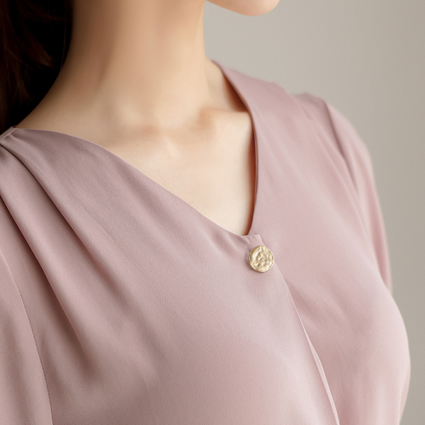 マット ゴールド ボタン ピンタック クロップド ブラウス