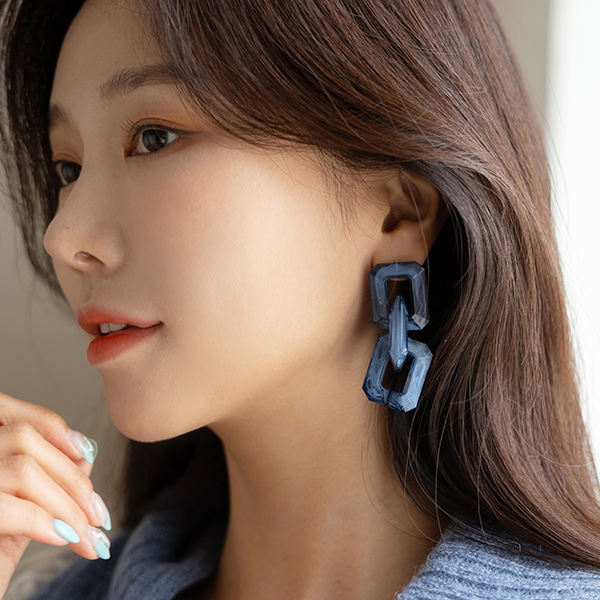 陰々たる オーシャン カラー ダブル スクエア ビッグ イヤリング
