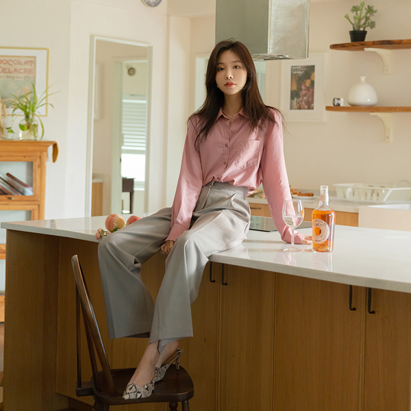 やわらかい カラー 人造絹糸 ポケット シャツ