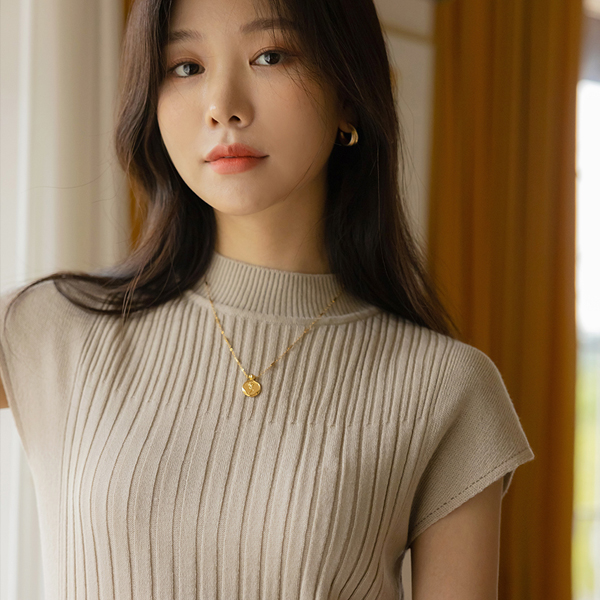 エレガンス ライン ポイント セミハイネック ロング ニット ワンピース
