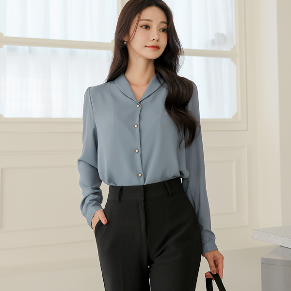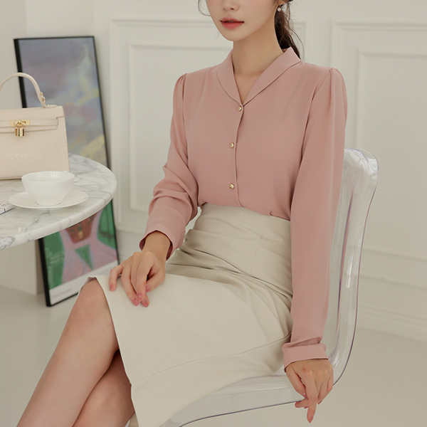 ラウンド カラー ゴールド ボタン ブラウス