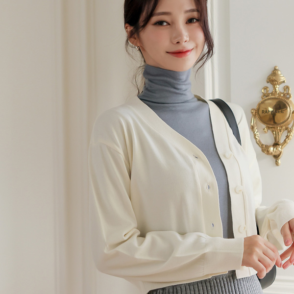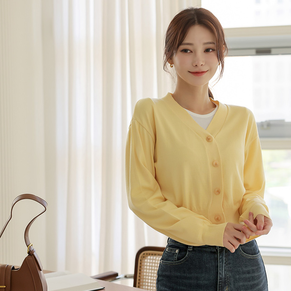 ビッグボタン ベーシック ショット カーディガン
