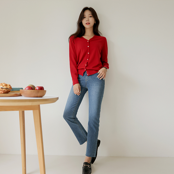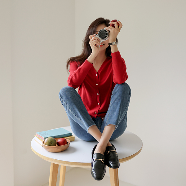 カラー ポイント ソフト ブイネック ニット カーディガン